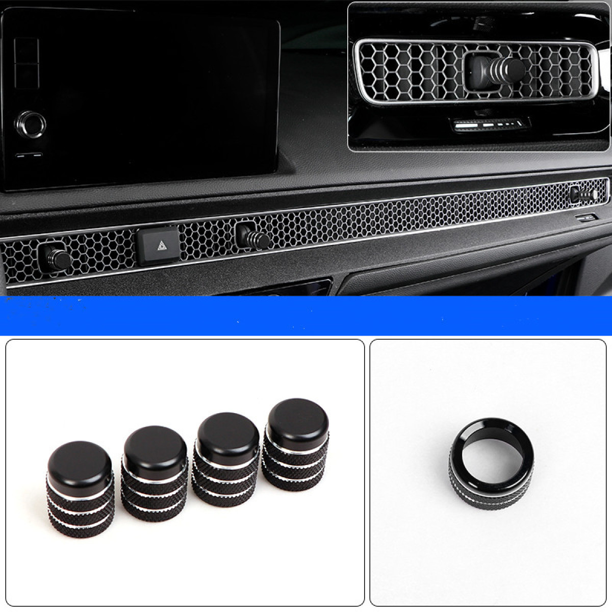 Color classification: Eleventh generation Civic [air conditioning knob decoration ring "Blue"], eleventh generation Civic [air conditioning knob decoration circle "Red"], eleventh generation Civic [air conditioning knob decoration circle "Gold"], eleventh generation Civic [Air conditioning knob decoration ring "Black"], 11th generation Civic [central control air outlet + audio knob ring "Blue"], 11th generation Civic [central control air outlet + audio knob ring "Red"], 11th generation Civic [Central Control Air Outlet + Audio Knob Ring "Gold"], 11th Generation Civic [Central Control Air Outlet + Audio Knob Circle "Black"]