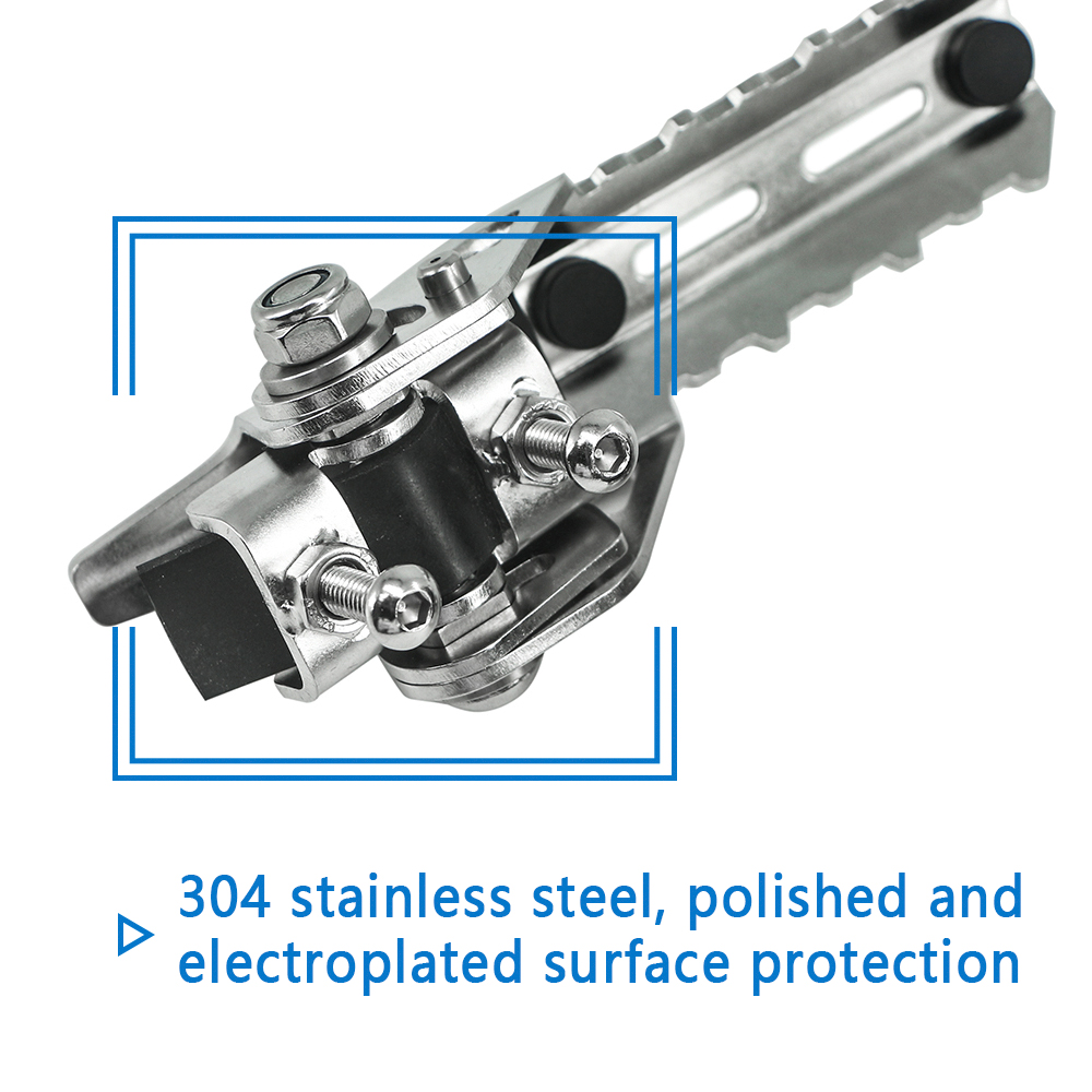 Thanks to the serrated surface developed in enduro racing, the road pedals provide optimal grip even for heavy boots, making long runs a breeze. They fold tightly onto the tube and take up very little space - a distinct advantage if things get tight during off-road trips. Thanks to their special fixing mechanism, they are the ideal accessory on the bumper fairing of the BMW R 1200 GS-W