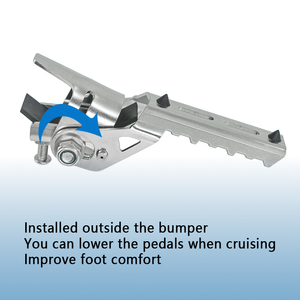 A way to relax your legs on a long trip! These road pegs are additional foldable footrests that allow you to stretch your legs into a more comfortable position while driving.