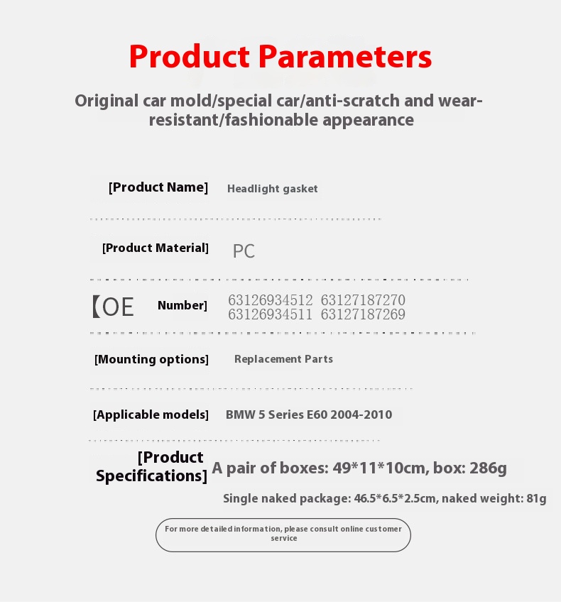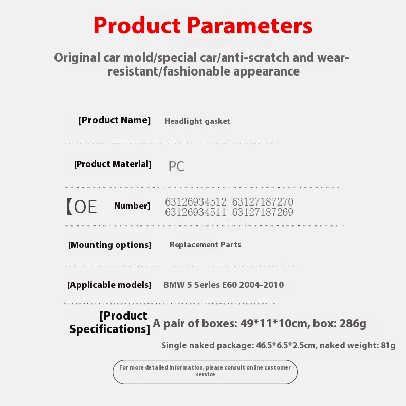Product information:Color: left, rightMaterial: NylonApplicable vehicle model: BMW 5 Series E60 E61 04-10 years