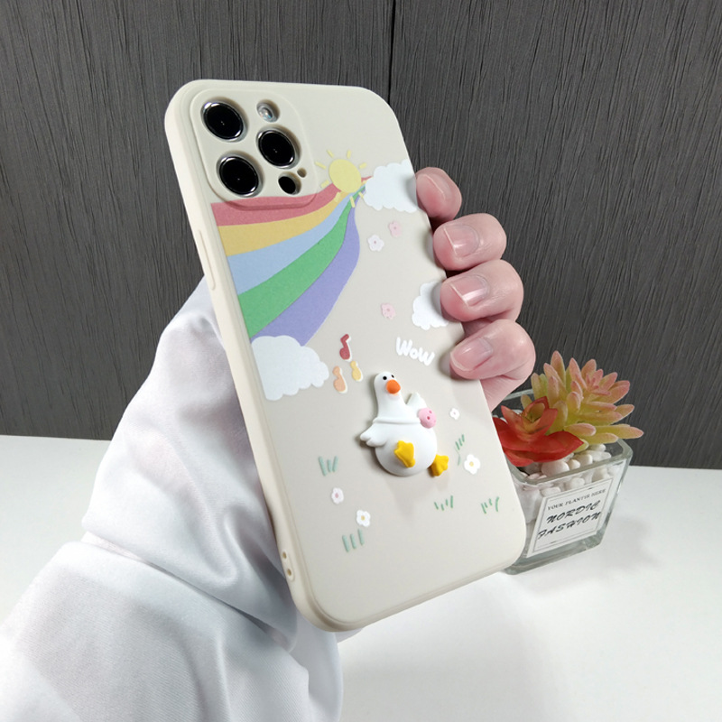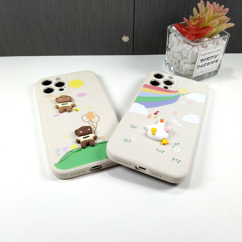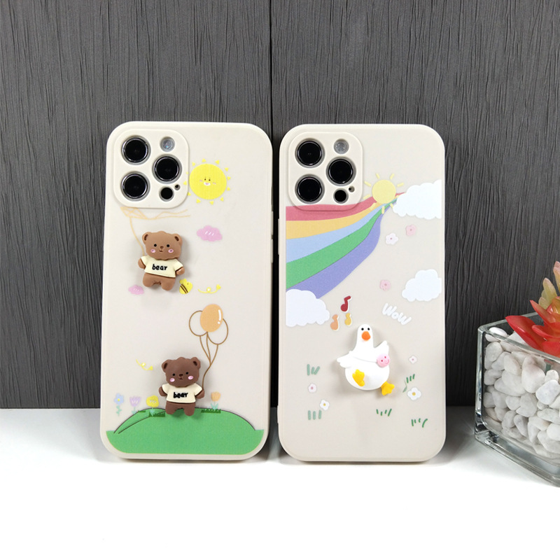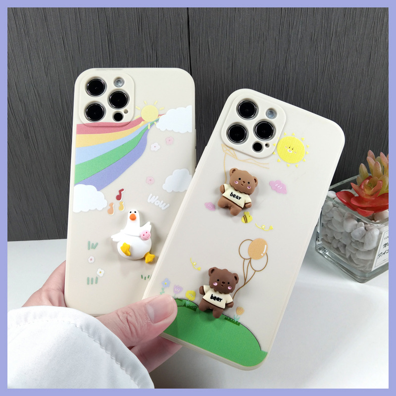 Color: three-dimensional rainbow duck-silicone shell, three-dimensional balloon bear-silicone shell
