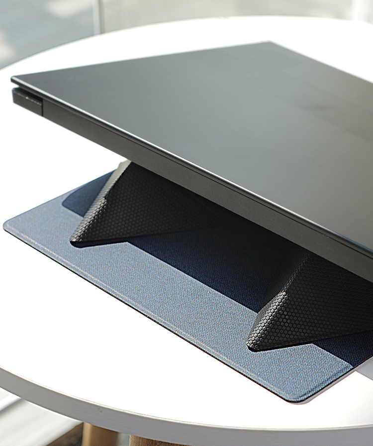 Ergonomic design, scientific and comfortable viewing angle, daily improvement of the posture of using the notebook, and daily work to relieve cervical spine pain, and also relieve cervical spine pressure when going out for business. Fibre texture + anti-slip design, stable and reliable, the measured load can be 12.5Kg, widely compatible with notebooks between 11.6-15.6 inches; line-to-line contact, built-in magnet, foldable design, only one second to close, heat protection, also There are multiple uses for mouse pads and mobile phone holders.