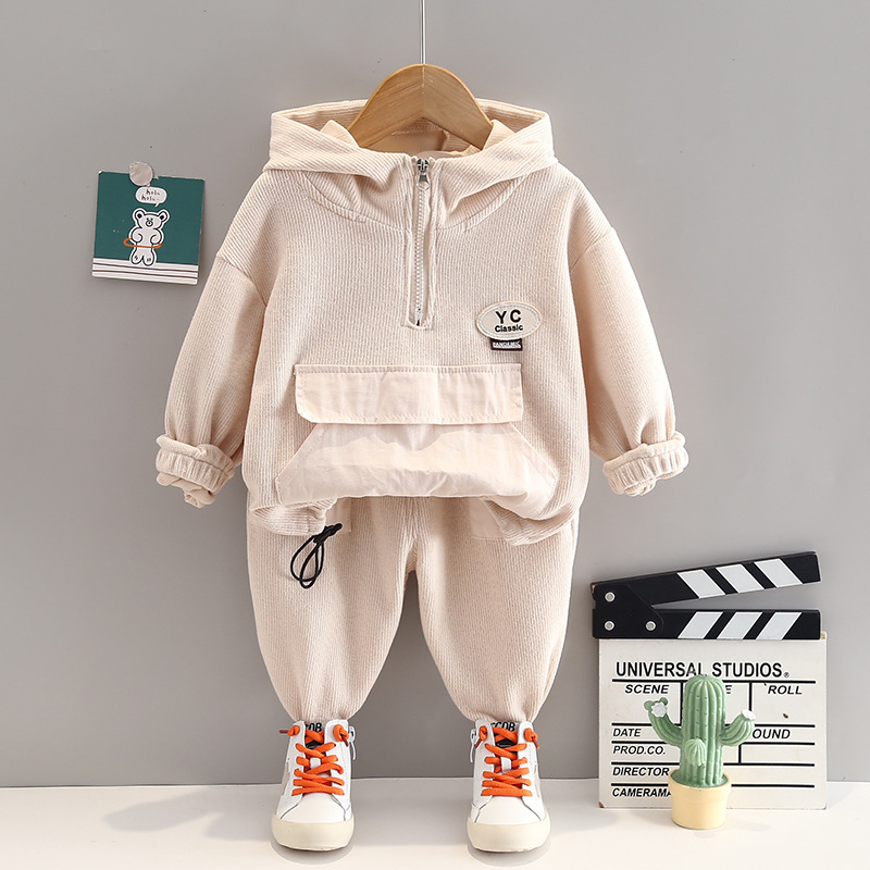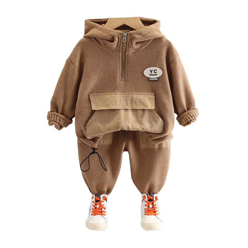 Color: long sleeve hooded sweater two-piece beige, long sleeve hooded sweater two-piece camel, long sleeve hooded sweater two-piece Green