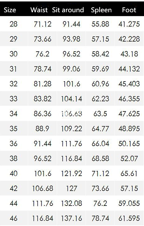 Size: 28,29,30,31,32,33,34,36,38,40,42,44 (3 feet 5), 46 (3 feet 7)