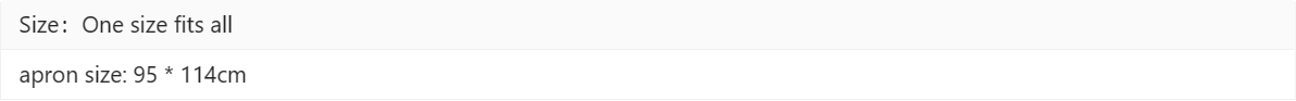 Specification: apron size: 95 * 114cm