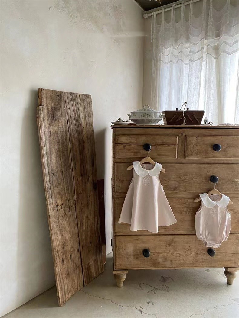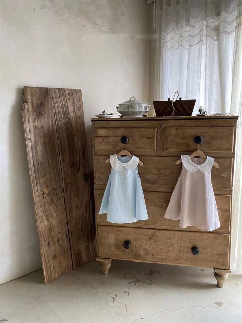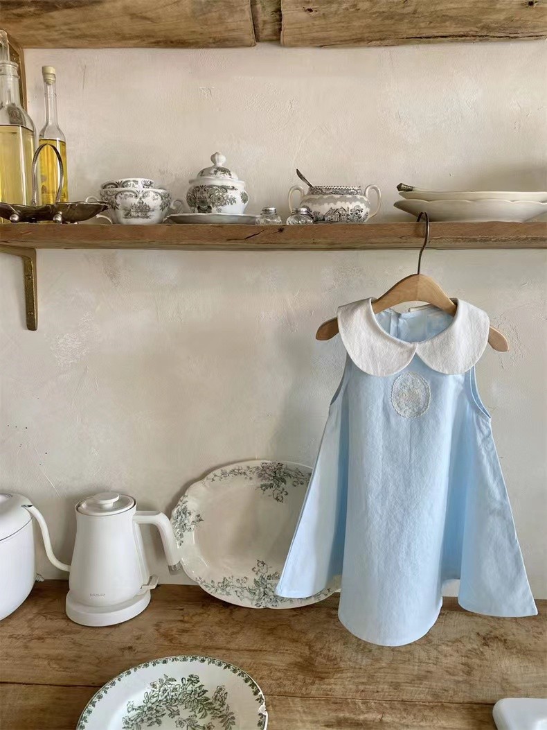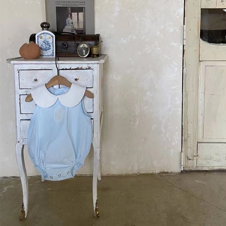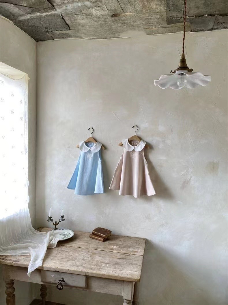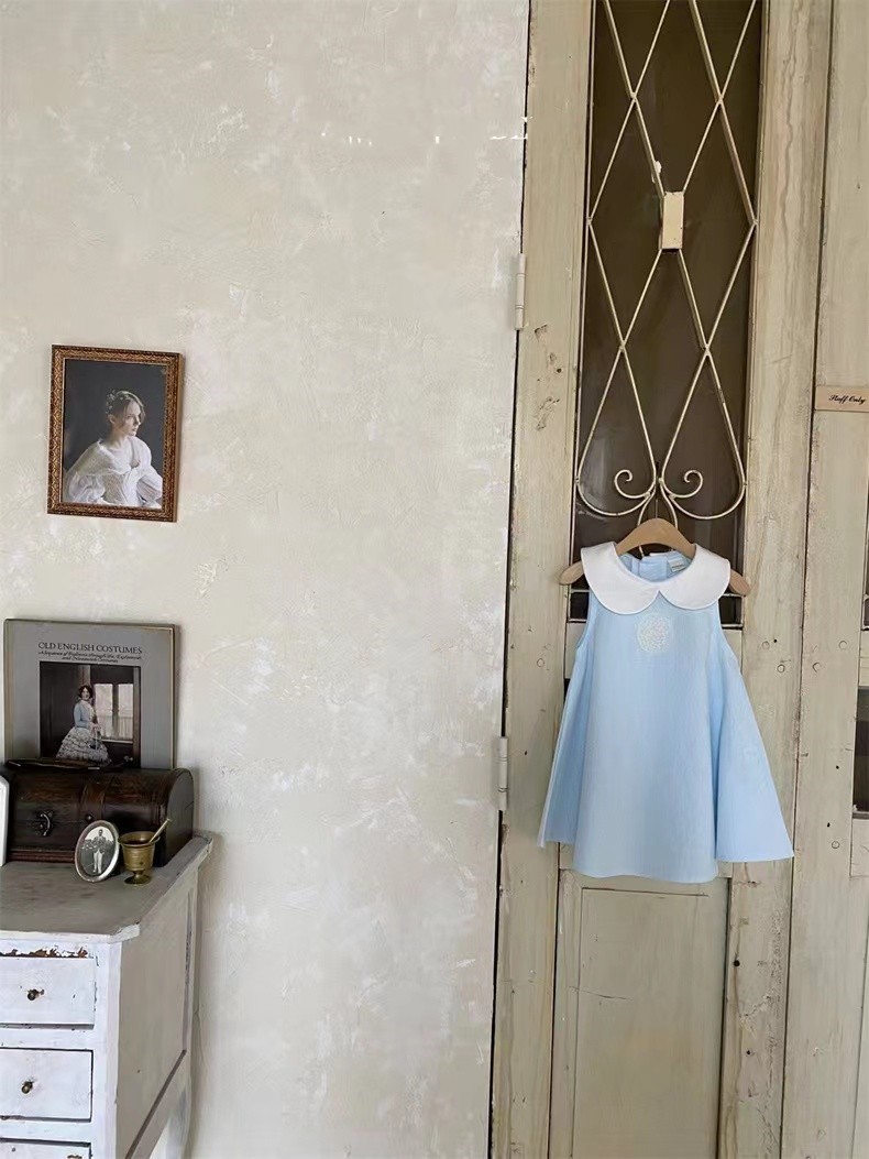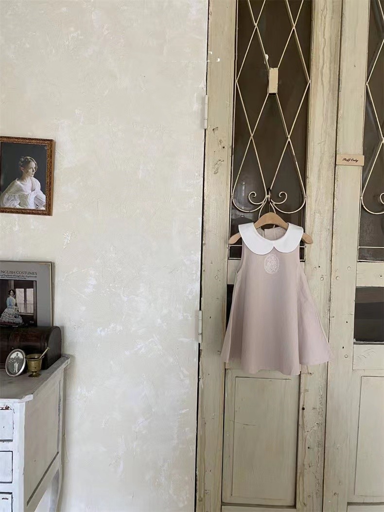 Color: light blue lace patch doll collar sleeveless jumpsuit, light pink lace patch doll collar sleeveless jumpsuit, light blue lace patch doll collar sleeveless dress, light pink lace patch doll collar sleeveless dress