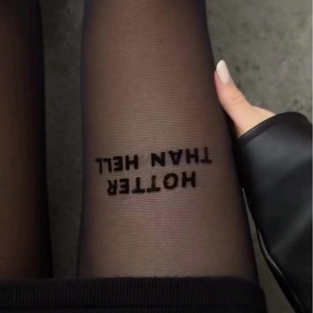 Summer Black Thin Style Ribbon Letter Flocking Stockings
