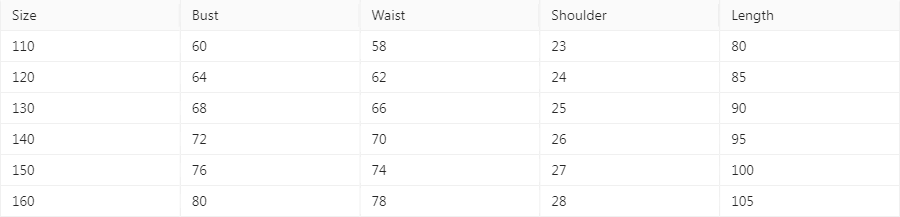 Size: 110cm, 120cm, 130cm, 140cm, 150cm, 160cm