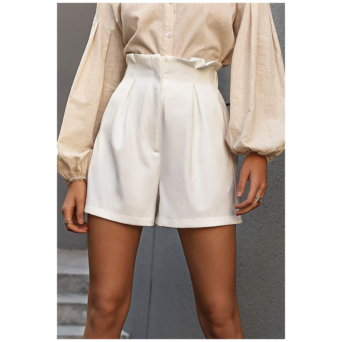 Summer Buds Shorts Female Pure Color Zipper High Waist Pants