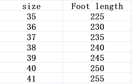 Size: 35, 36, 37, 38, 39, 40, 41