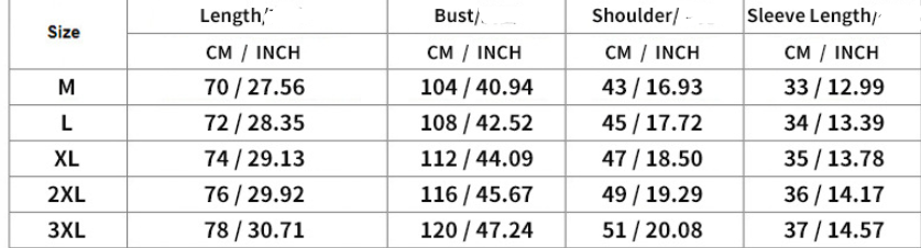 Size: M/L/XL/XXL/3XL