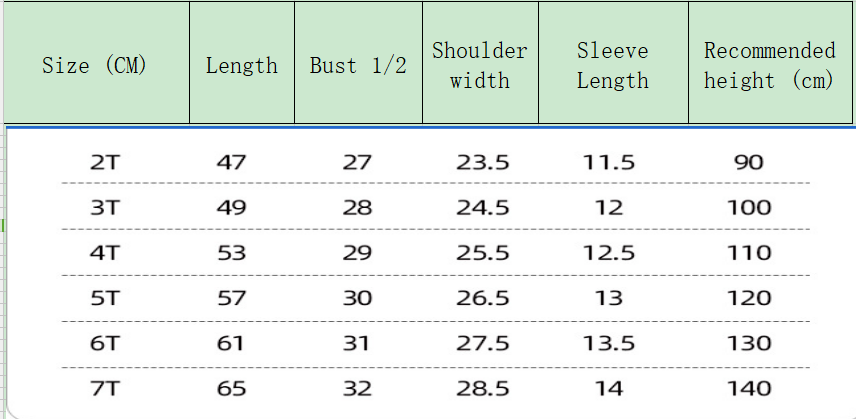Suitable for height: 3T(100), 4T(110), 5T(120), 6T(130), 7T(140)