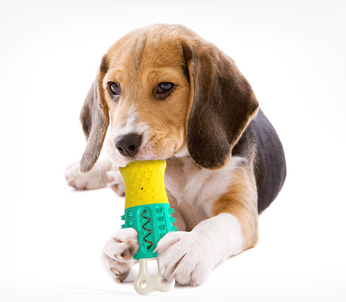The tooth cleaning channel of the toy can be coated with pet toothpaste or food