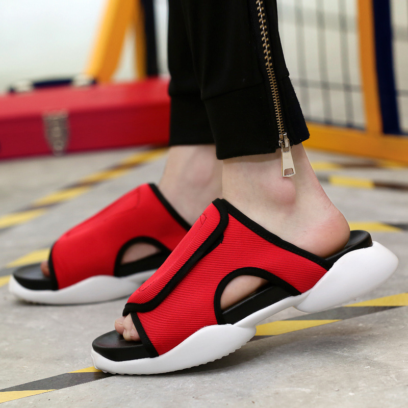 Summer couple sandals and slippers trend thick-soled men's one-word slippers breathable thick-soled increased beach slippers