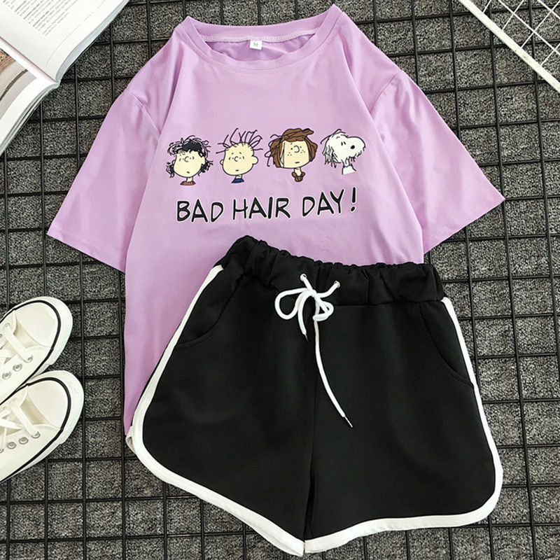 Summer Cute Short Sleeve Shorts Suit Home Wear