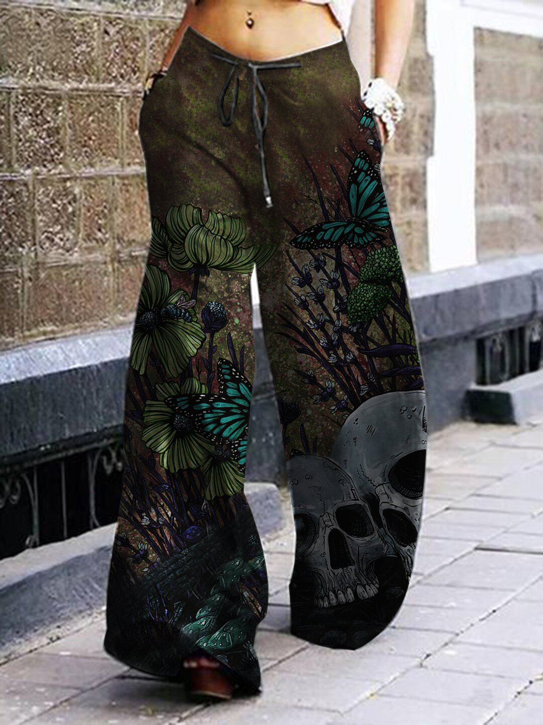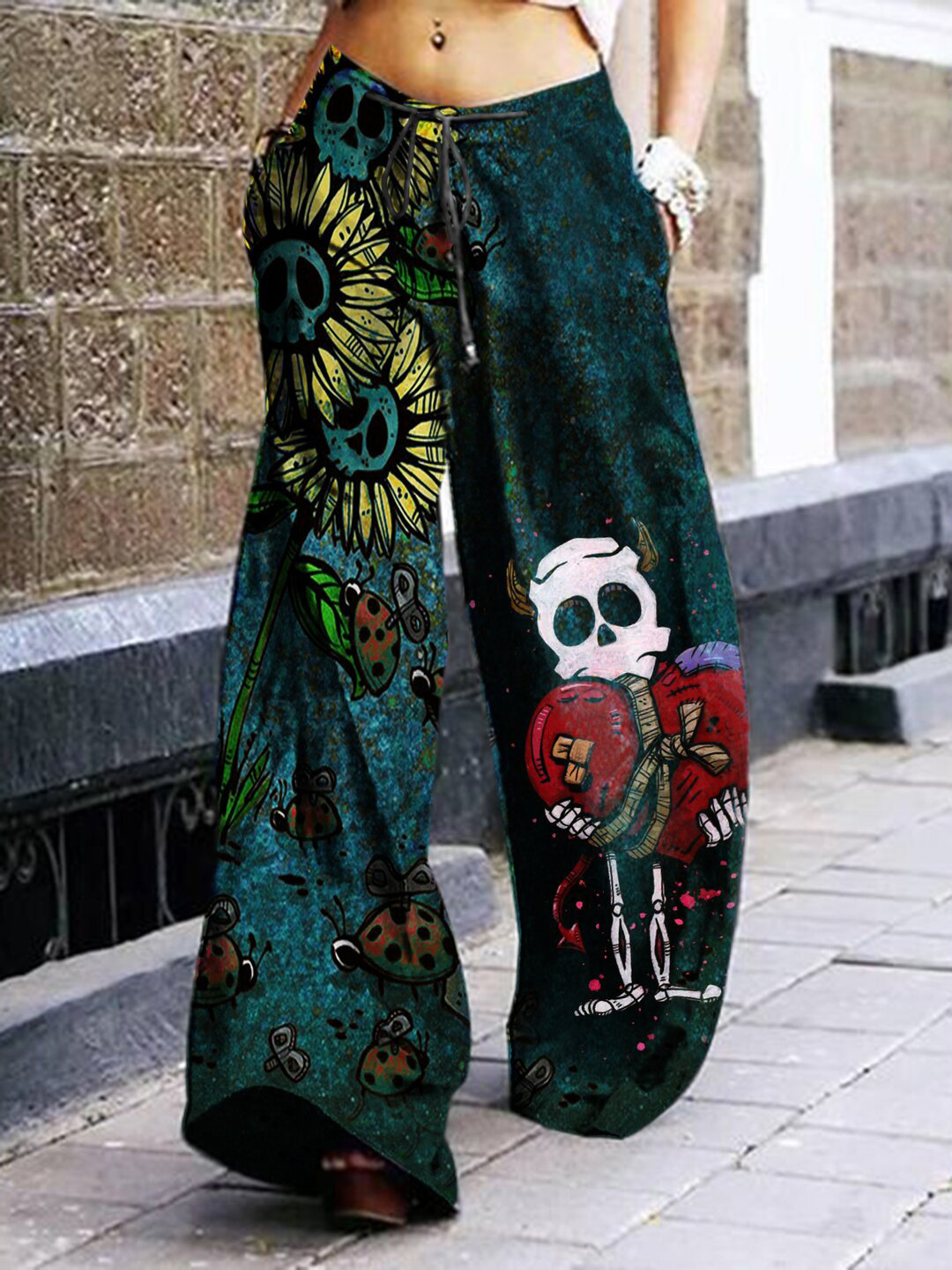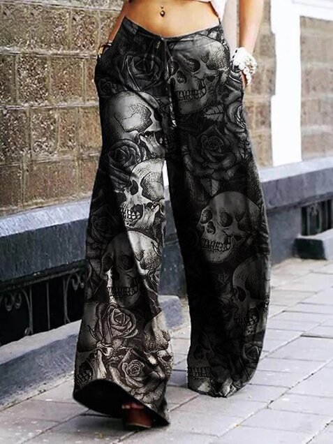 Summer Dark Rock Style Straight High Waist 3D Skull Overalls