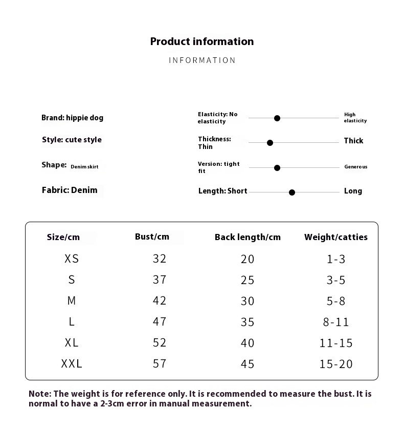 Size: XS (recommend weight 0.50kg-1.50kg,S (recommend weight 1.50kg-2.50kg,M (recommend weight 2.50kg-4.00kg,L (recommend weight 4.00kg-5.50kg, XL (recommend weight 5.50kg-7.50kg, XXL (recommend weight 7.50kg-10.00kg