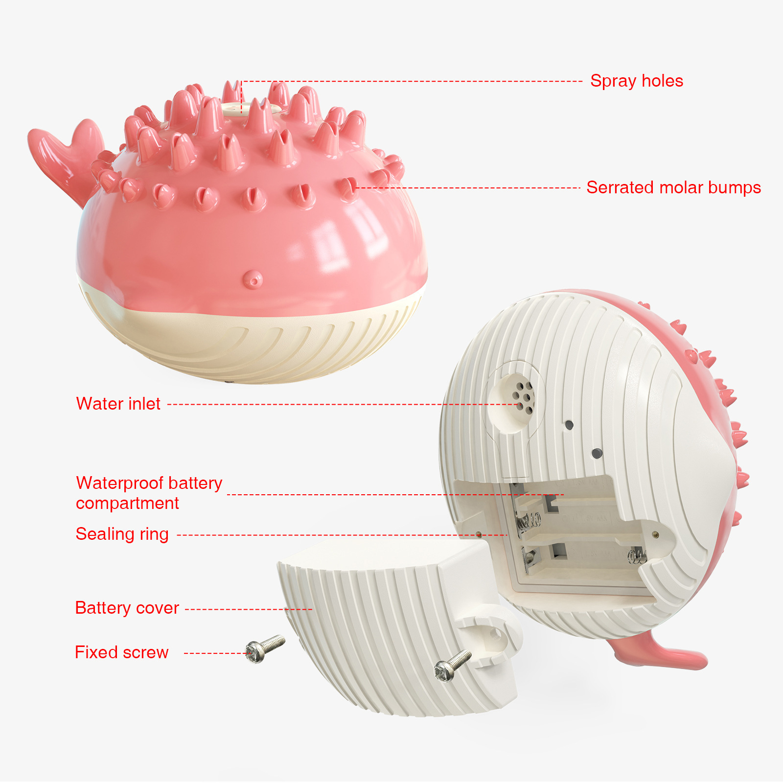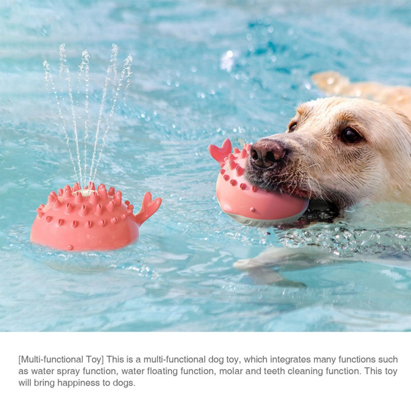 1.[ Multi-functional Toy] This is a multi-functional dog toy, which integrates many functions such as water spray function, water floating function, molar, and teeth cleaning function. This toy will bring happiness to dogs.