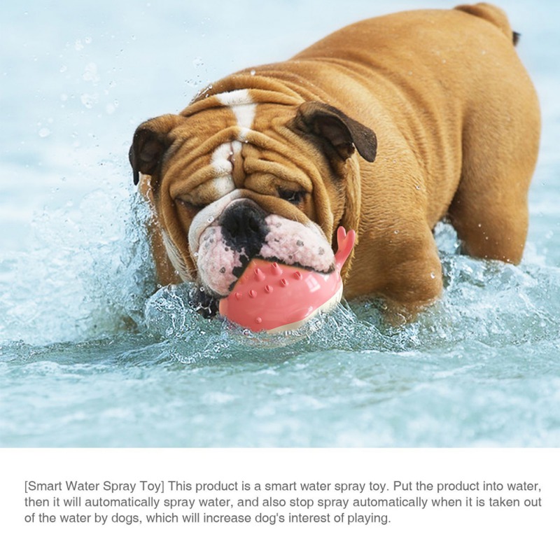 2.[ Smart Water Spray Toy] This product is a smart water spray toy. Put the product into water, then it will automatically spray water, and also stop spray automatically when it is taken out of the water by dogs, which will increase the dog's interest in playing.