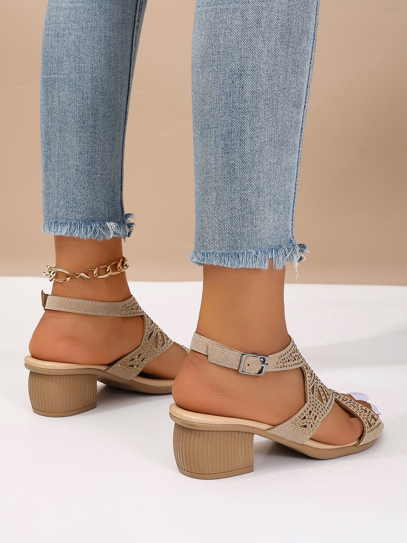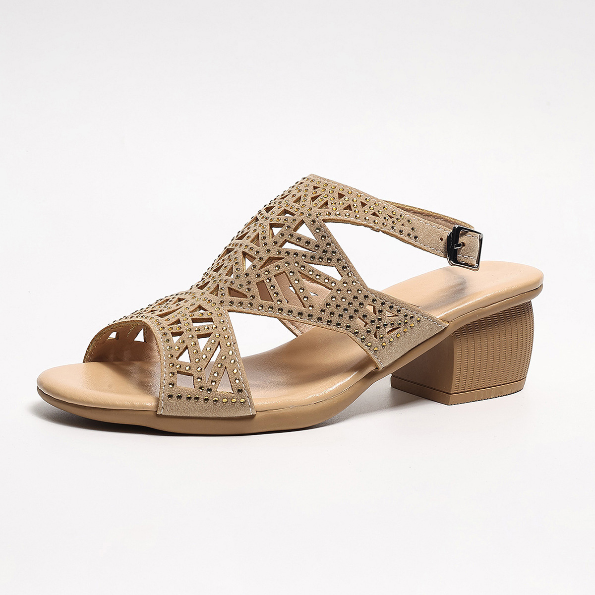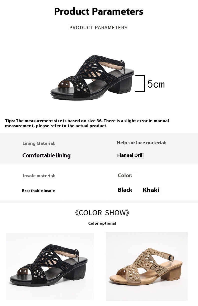 Summer Female Chunky Heel Rhinestone Hollow Out Peep-toe High-heeled Sandals