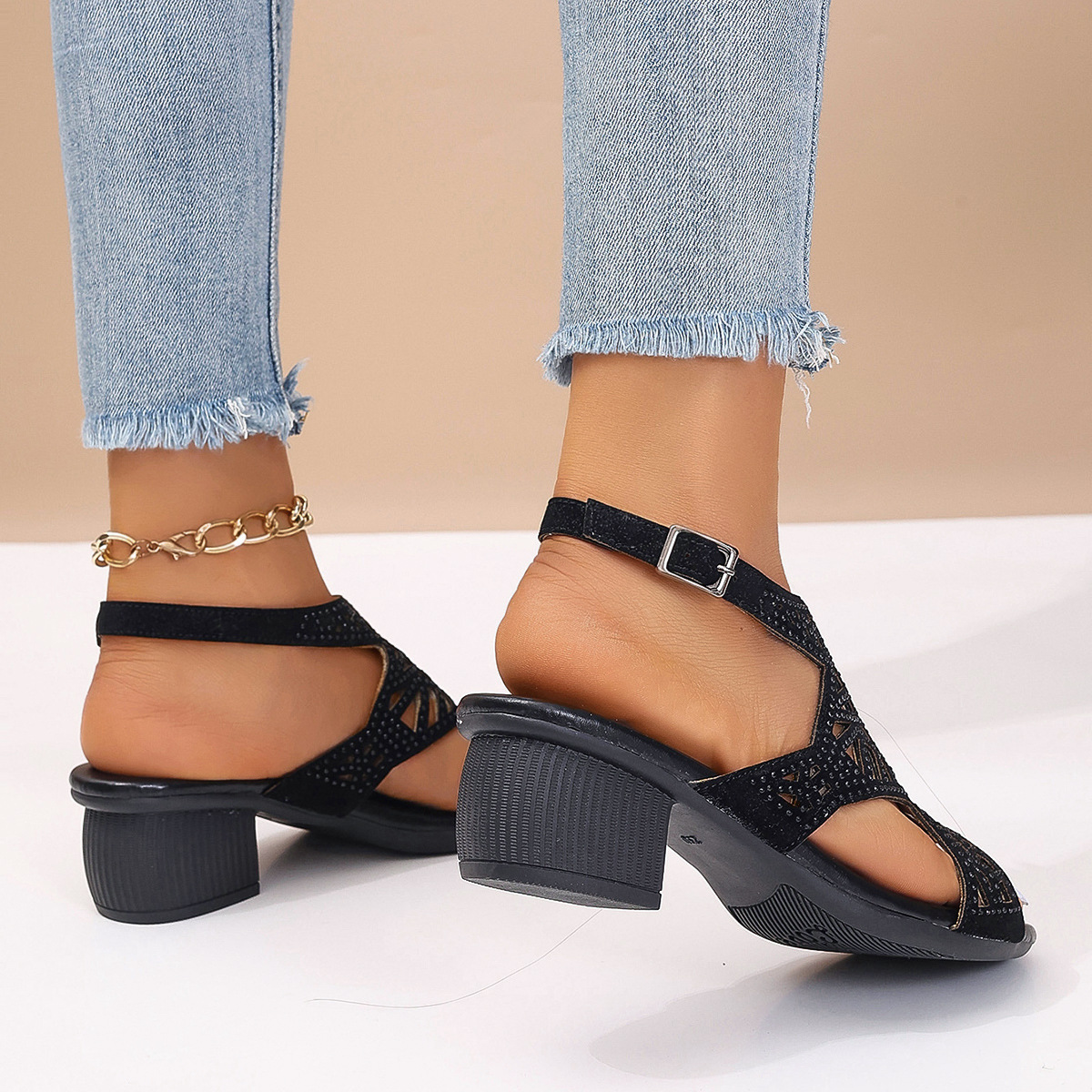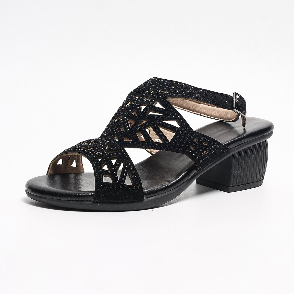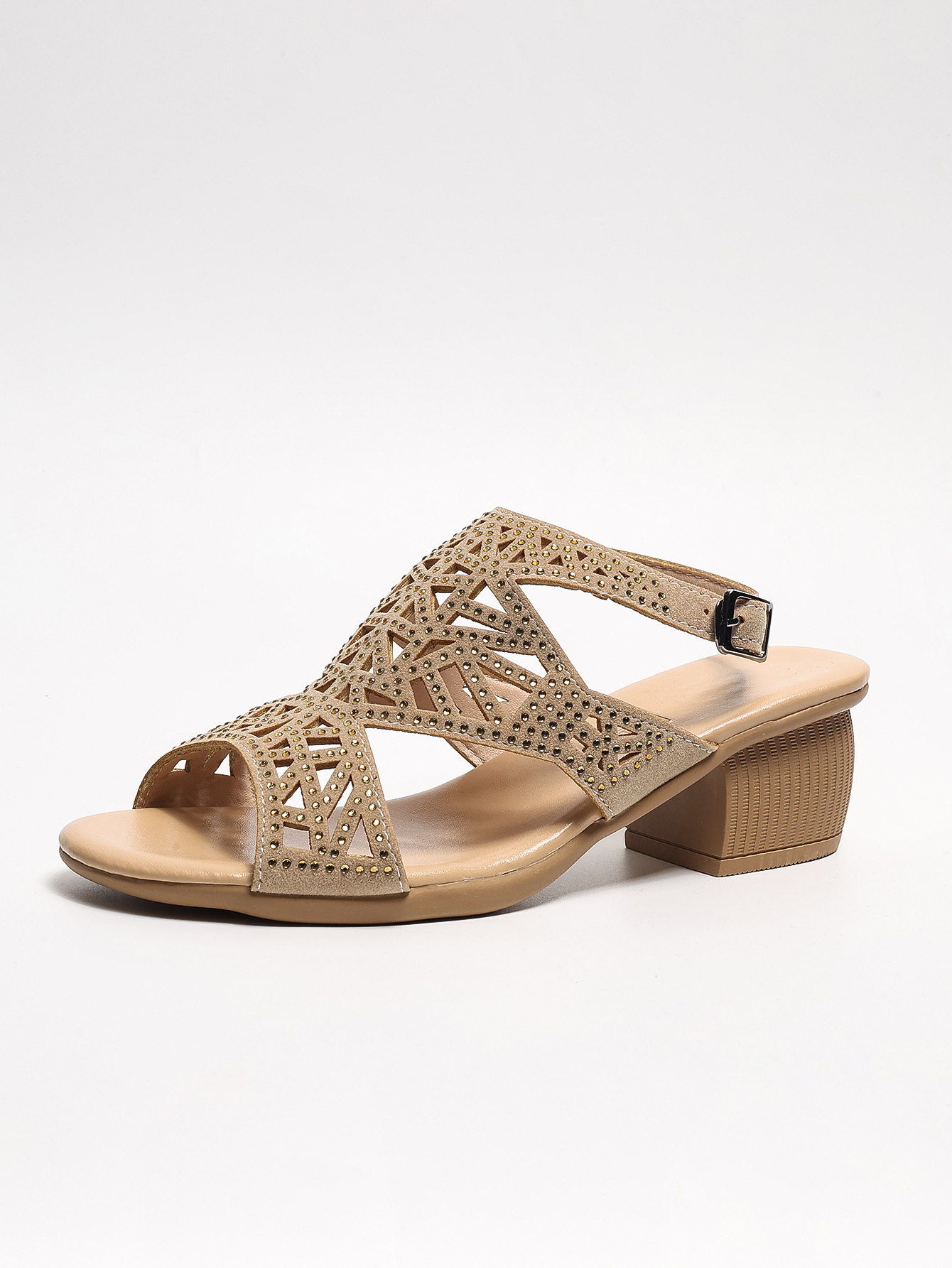 Summer Female Chunky Heel Rhinestone Hollow Out Peep-toe High-heeled Sandals