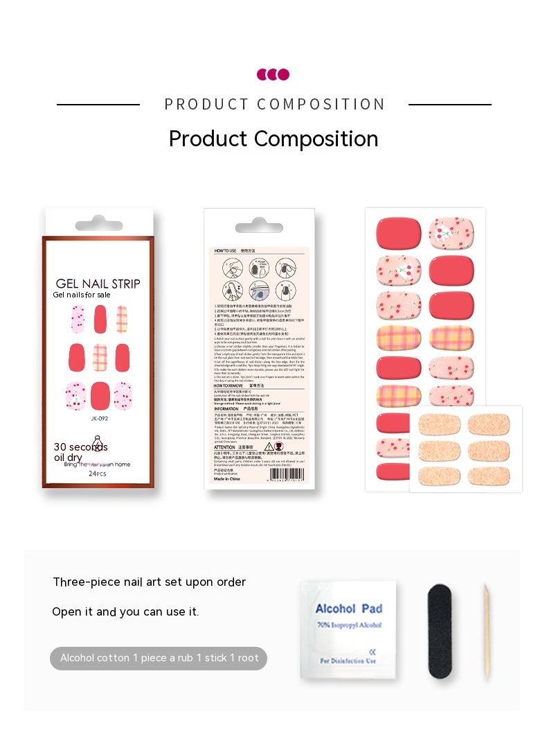Sticker+alcohol cotton+nail rub+wooden stick 1 piece