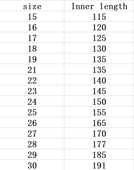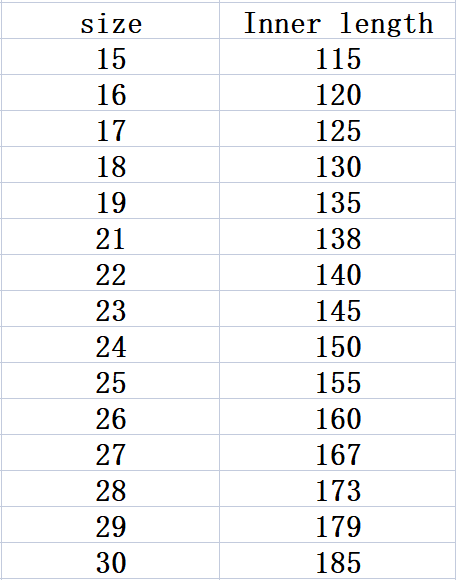 Size: 15 16 17 18 19 21 22 23 24 25 26 27 28 29 30