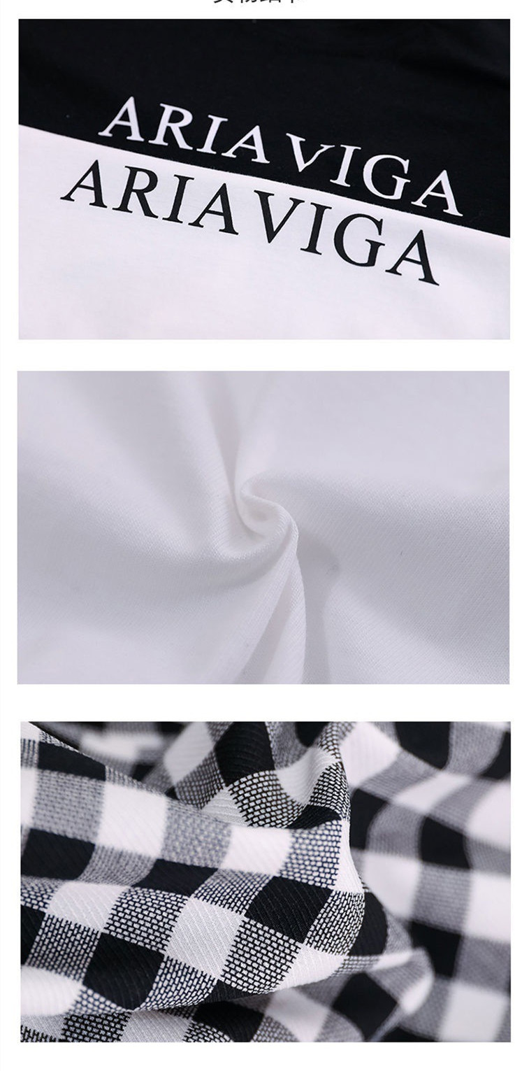 Color: single black and white plaid trousers, white T-shirt plaid trousers, black T-shirt plaid trousers
