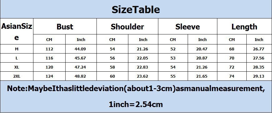 1. Asian sizes are 1 to 2 sizes smaller than European and American people. Choose the larger size if your size between two sizes. Please allow 2-3cm differences due to manual measurement. 2. Please check the size chart carefully before you buy the item, if you don't know how to choose size, please contact our customer service. 3.As you know, the different computers display colors differently, the color of the actual item may vary slightly from the following images.