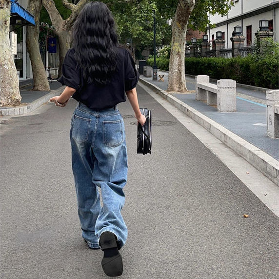 Summer High Waist Daddy Pants Slimming Loose Straight Mopping Pants