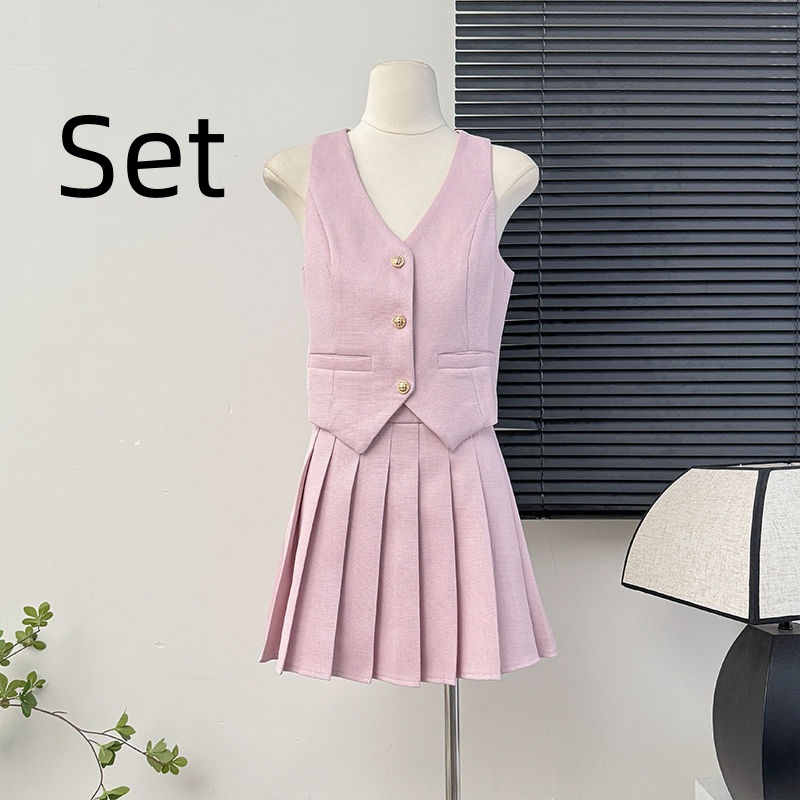 Color: apricot waistcoat, pink waistcoat, black vest, apricot skirt, pink skirt, black skirt, apricot waistcoat apricot skirt, pink waistcoat pink skirt, black vest black skirt