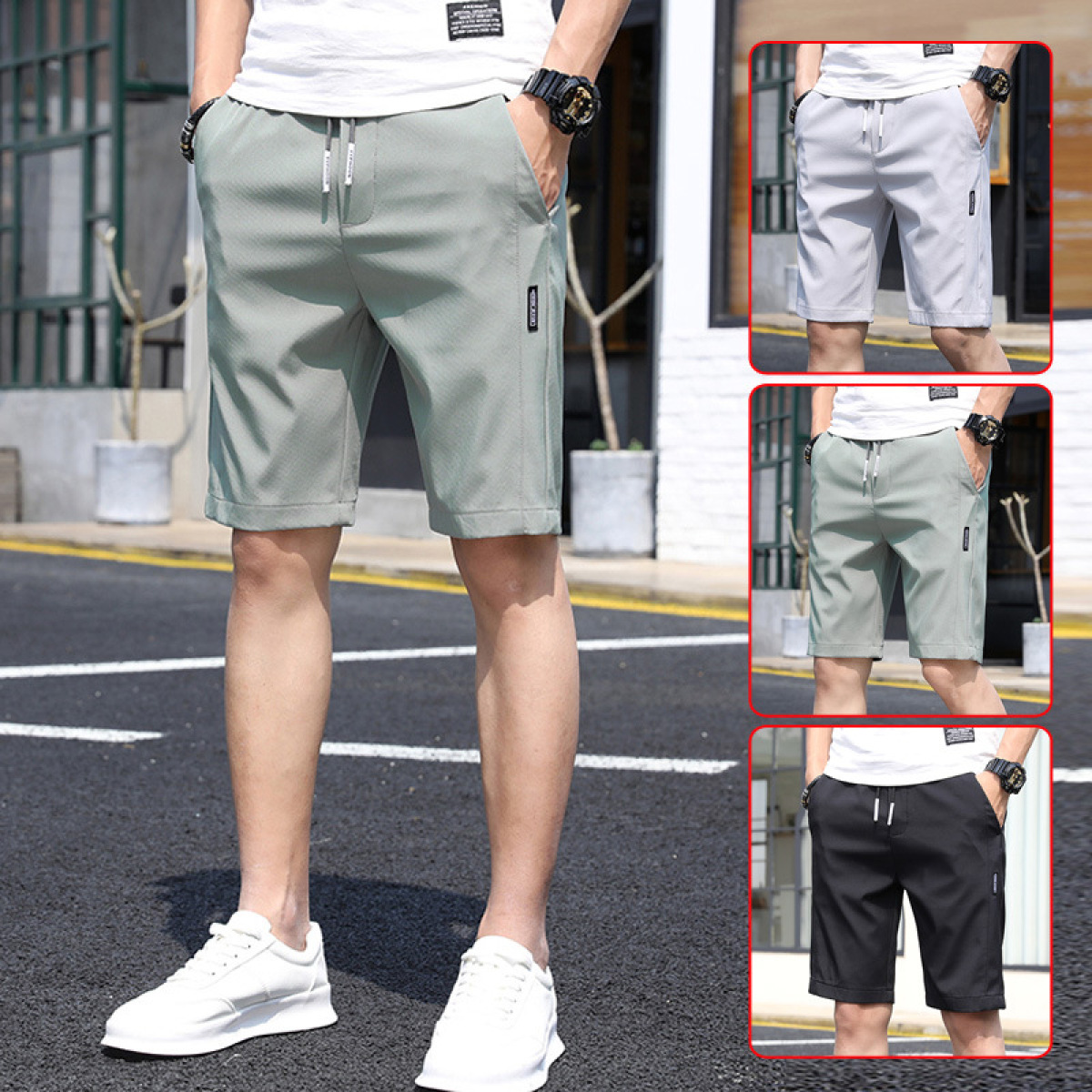 Summer Ice Silk Ultra-thin Middle Pants Men's Loose Track Pants Casual Breeches Beach Shorts Men's Shorts