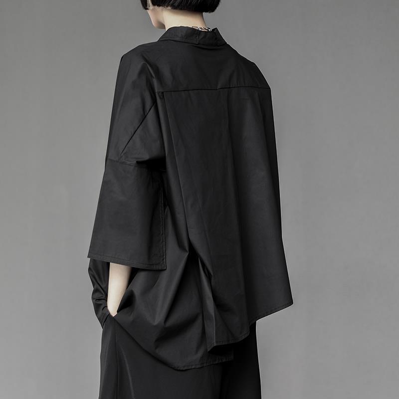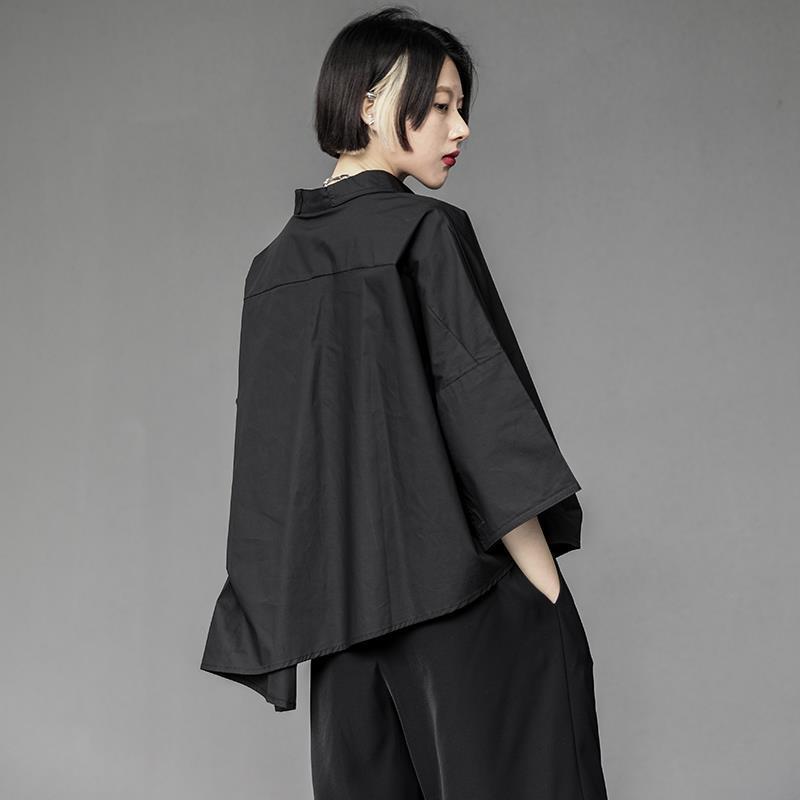 Summer Idle Style Loose Short Sleeve Black Shirt Women's Irregular 34 Sleeve Shirt