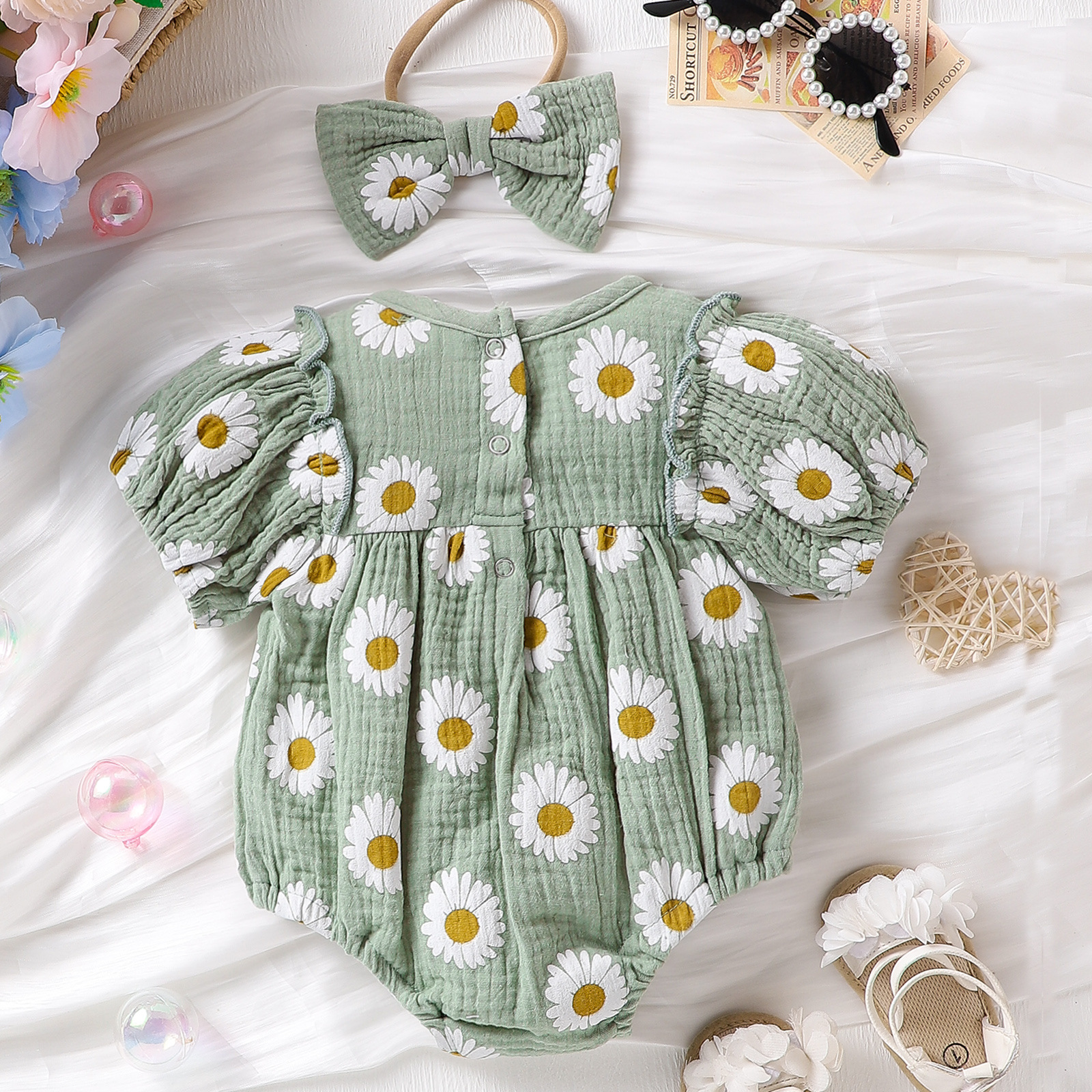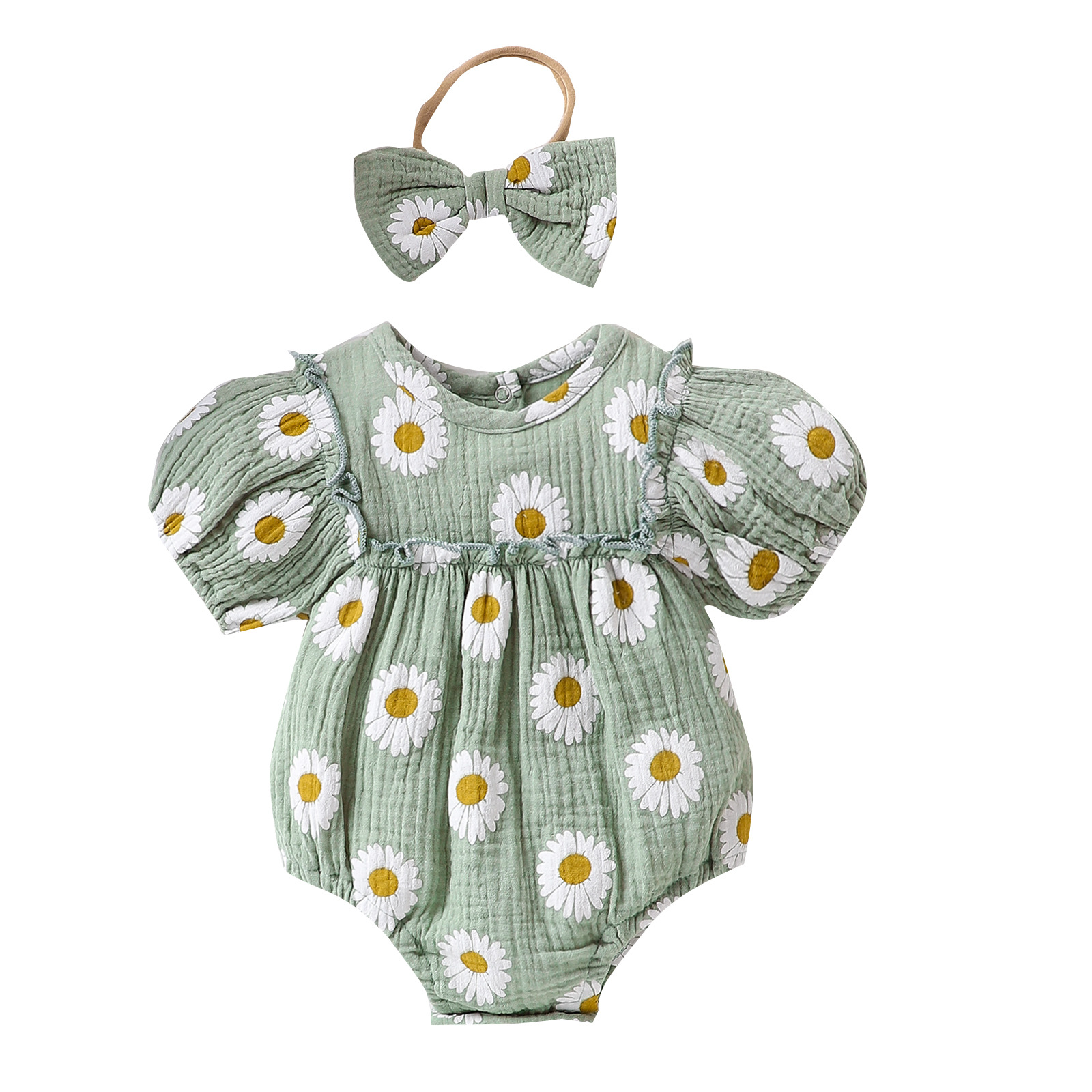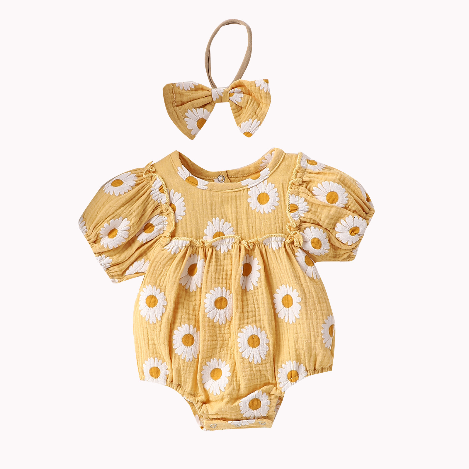 Summer Infant Baby Girl Sunshine Cheerful Small Sunflower A Three-color Rompers Jumpsuit Headdress