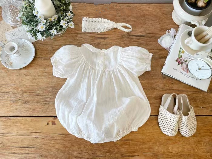 Summer Infant Ruffle Collar Puff Short Sleeve Romper