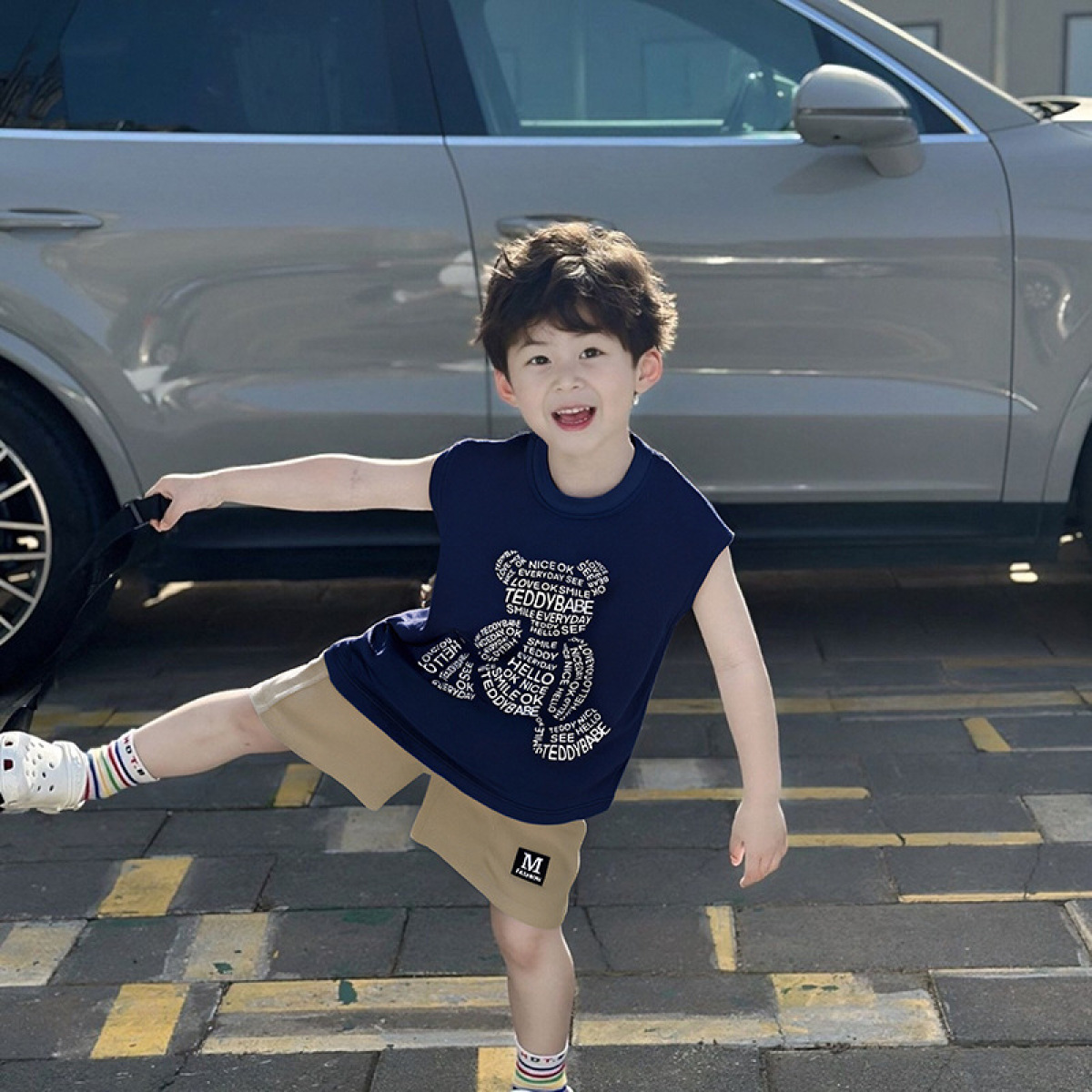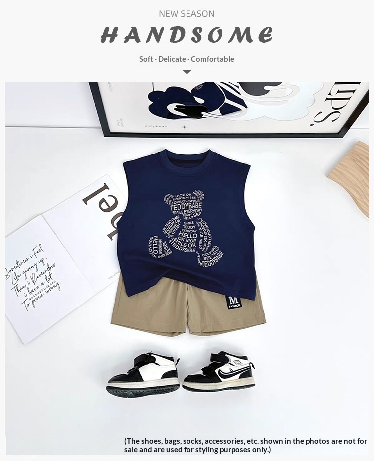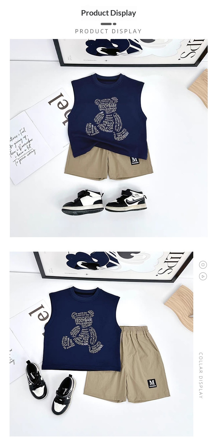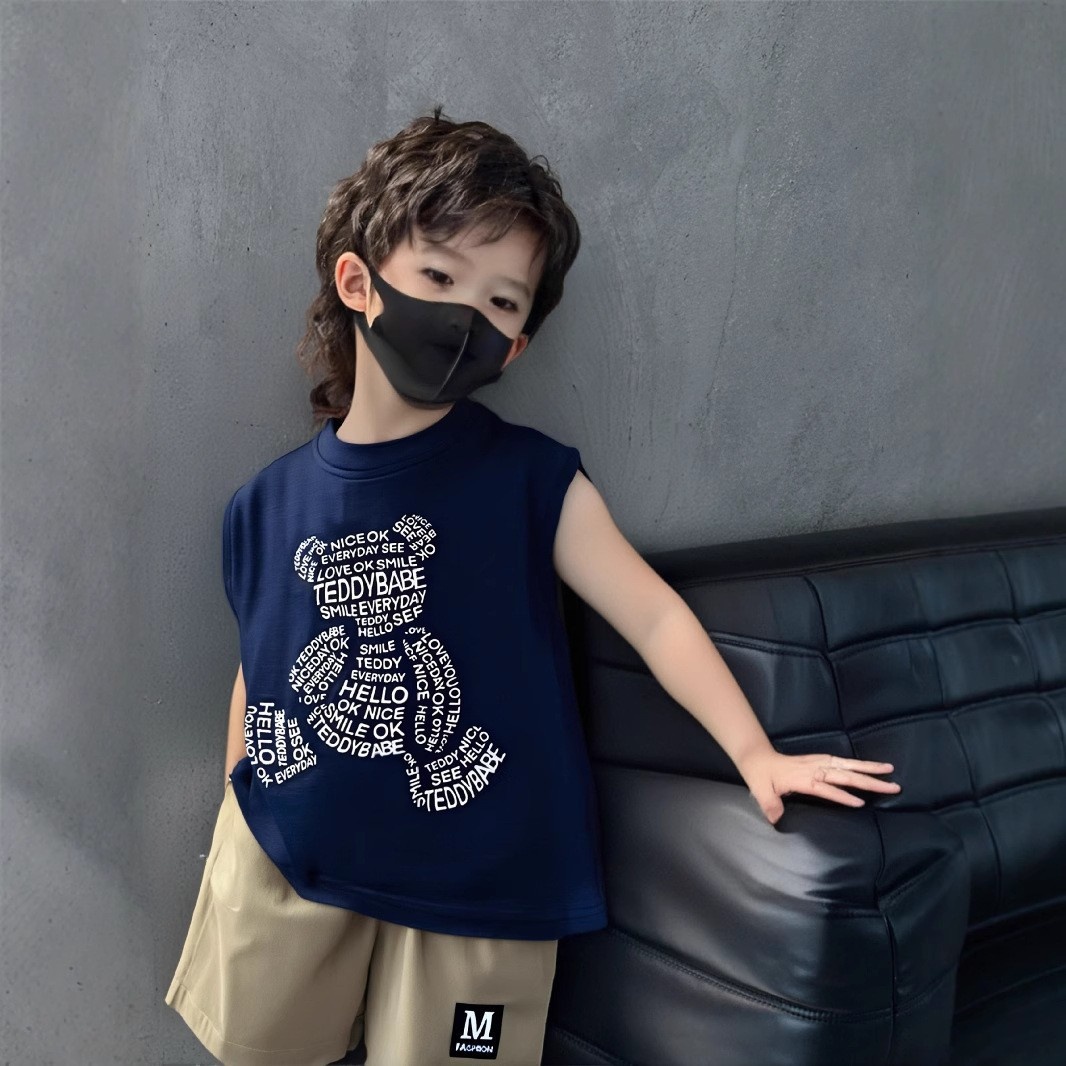 Summer Korean-style Sleeveless Boys Cartoon Letter Vest