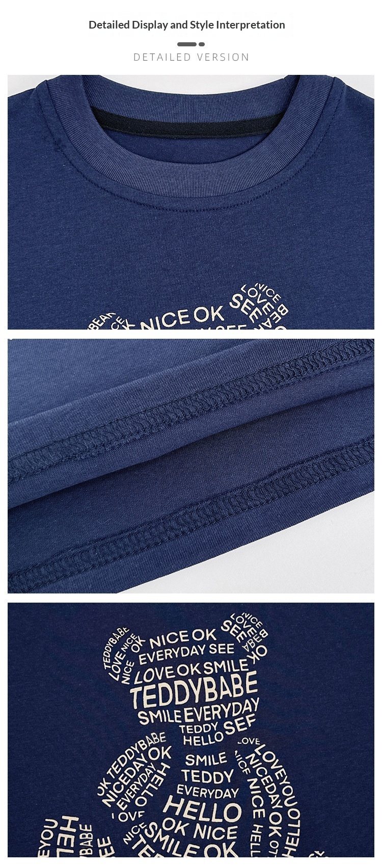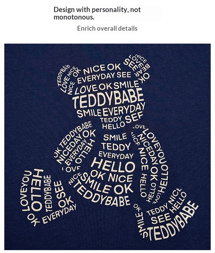 Pattern: Solid color, cartoon, letters