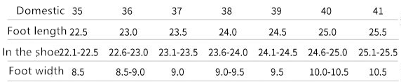 Size: 35 half a size too small, 36 half a size too small, 37 half a size too small, 38 half a size too small, 39 half a size too small, 40 half a size too small, 41 half a size too small