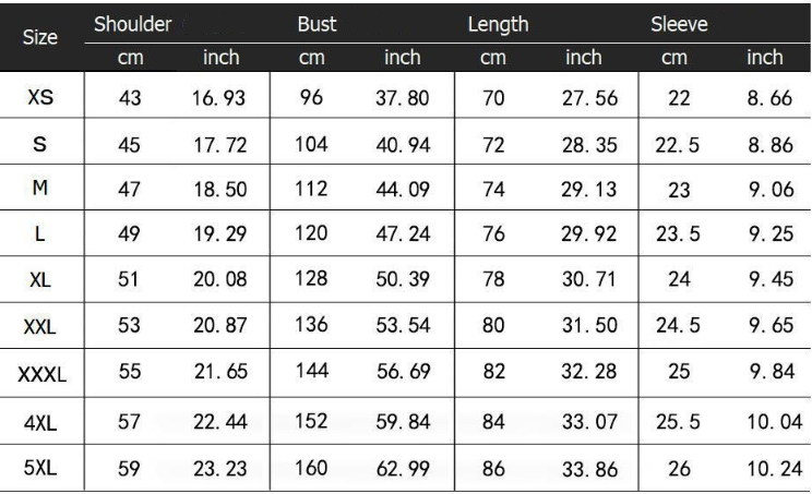 Size: S,M,L,XL,2XL,3XL,4XL,5XL
