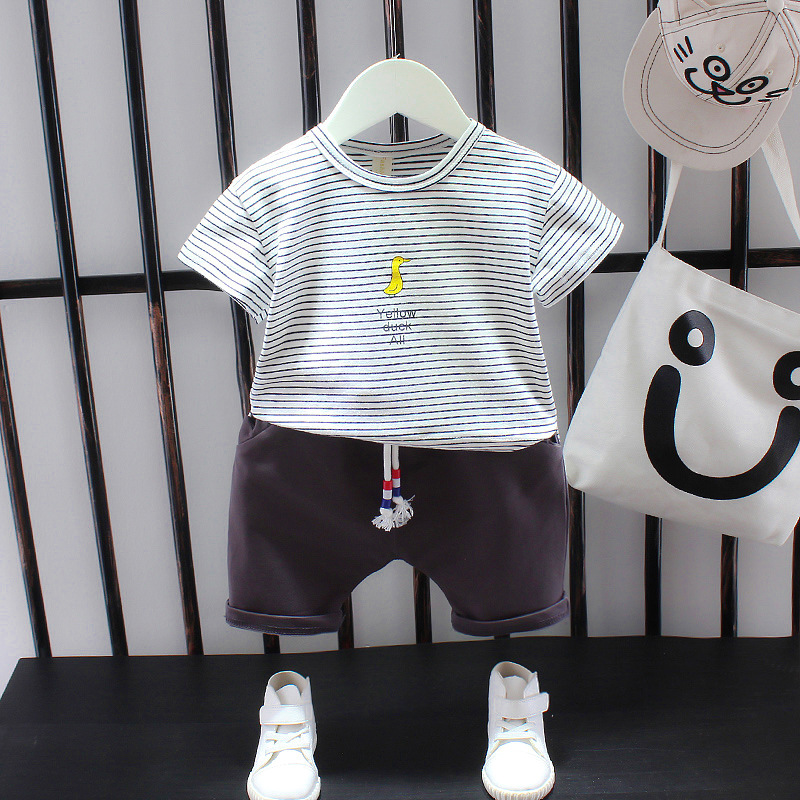 Style15 short-sleeved suit striped duck gray