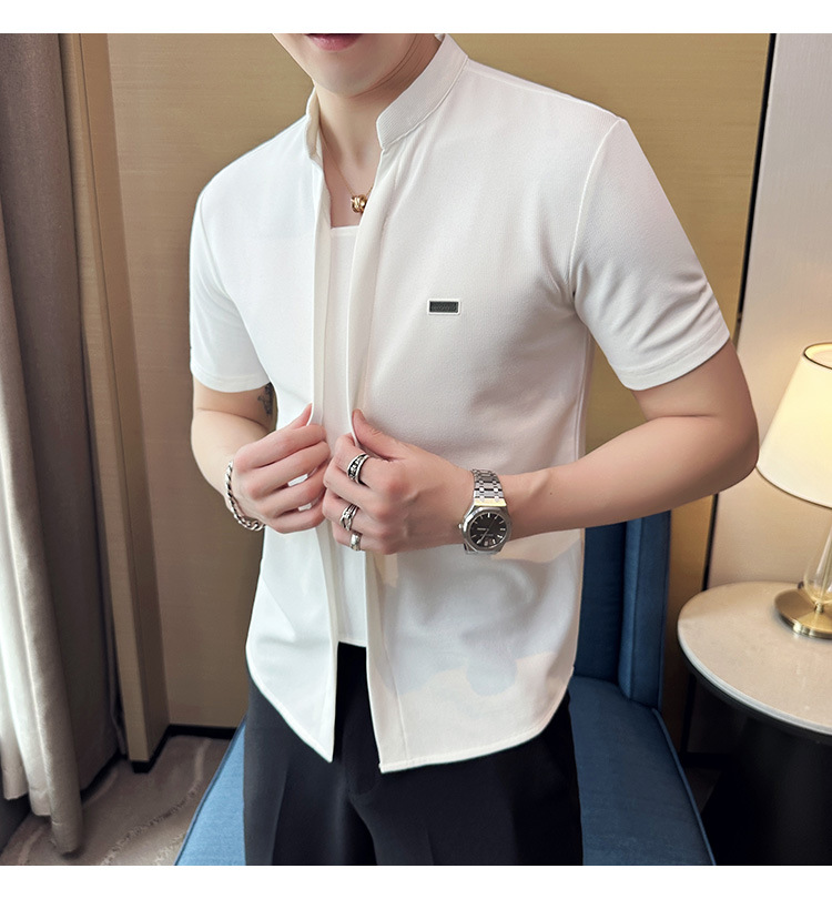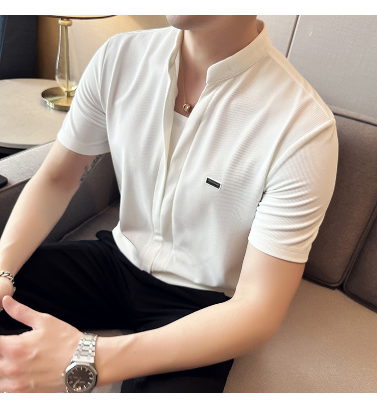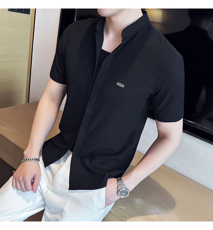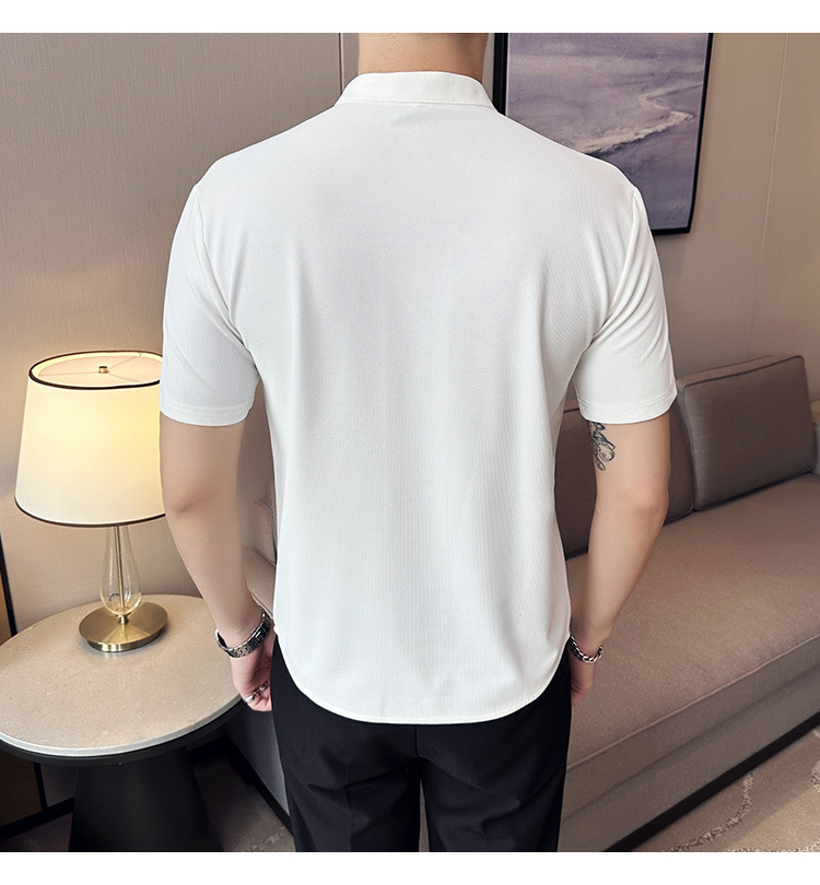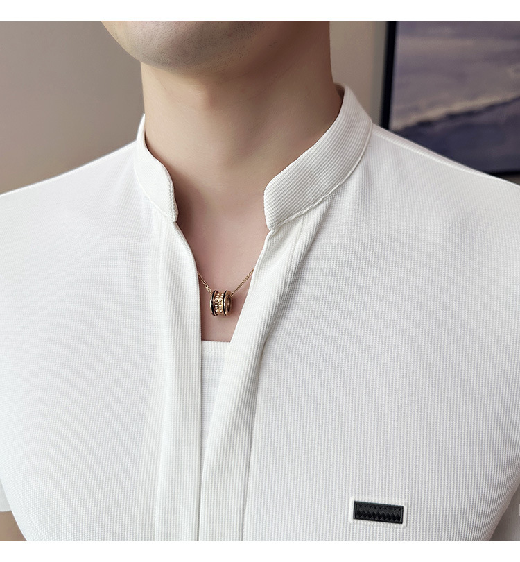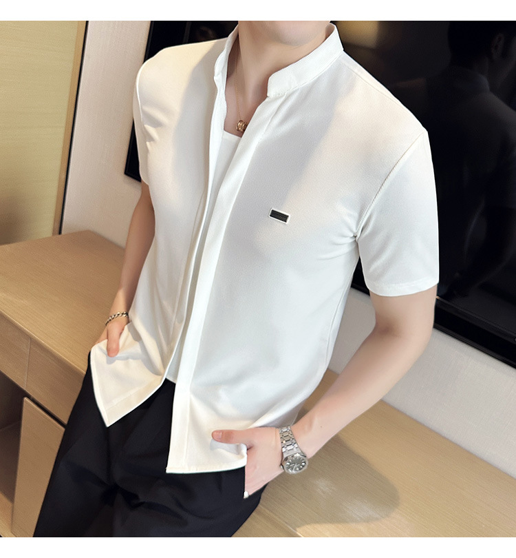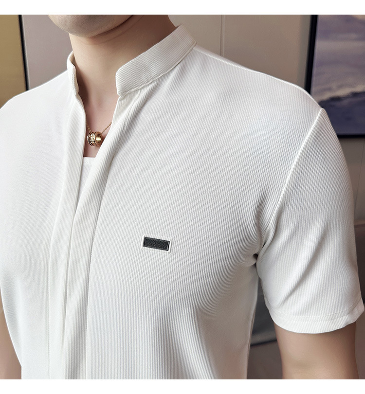Summer Light Waffle Short Sleeve Shirt Niche Design Stand Collar