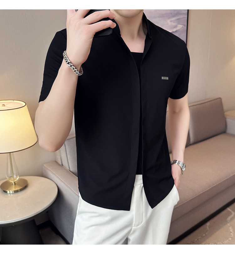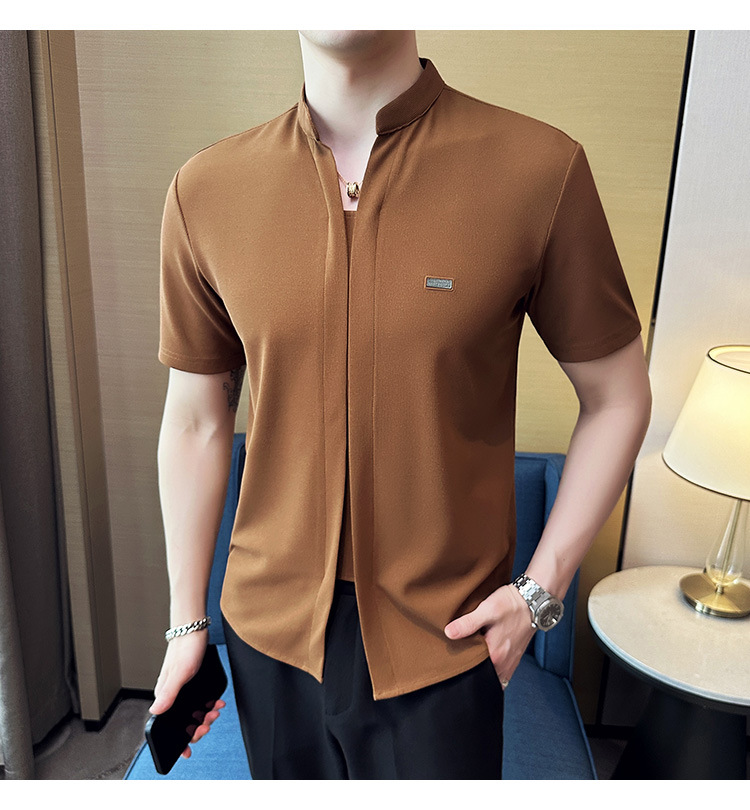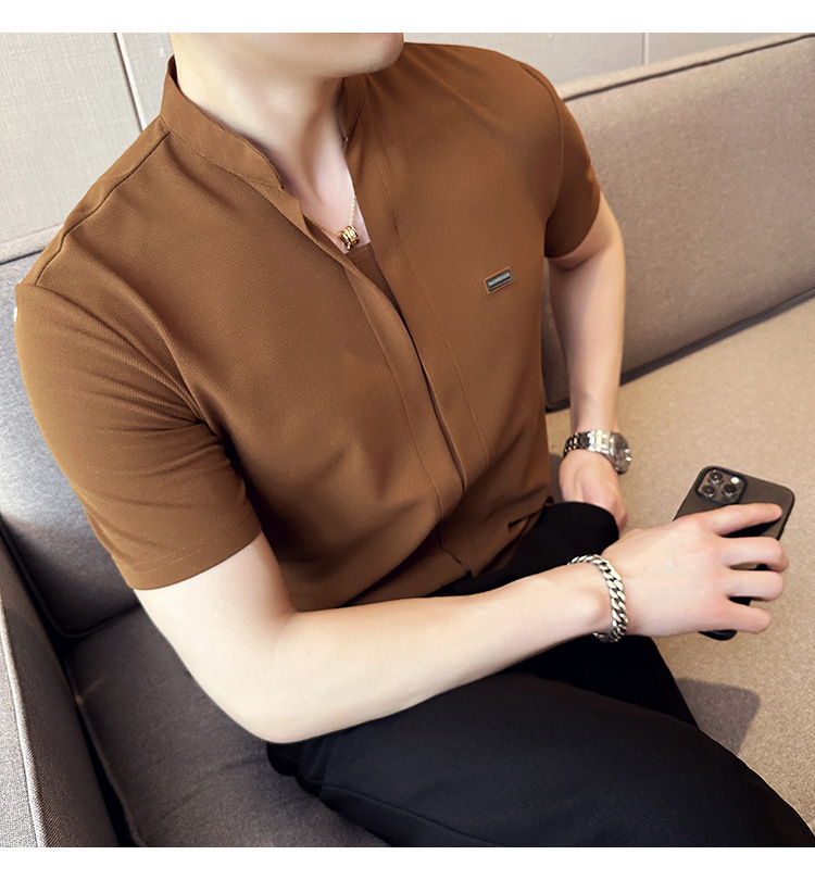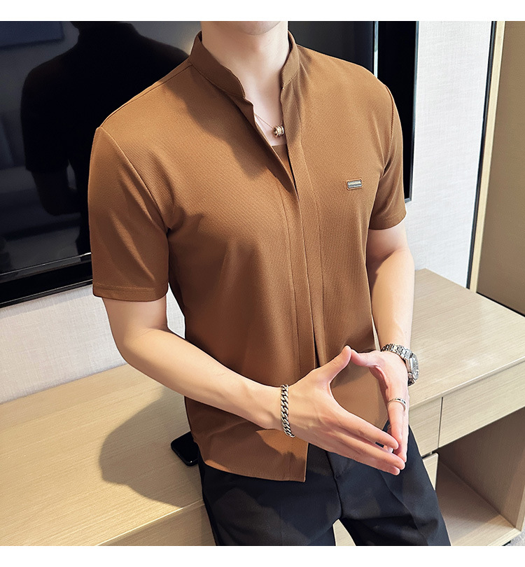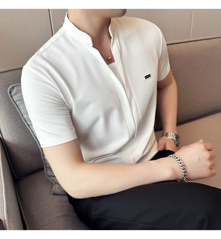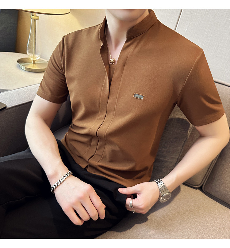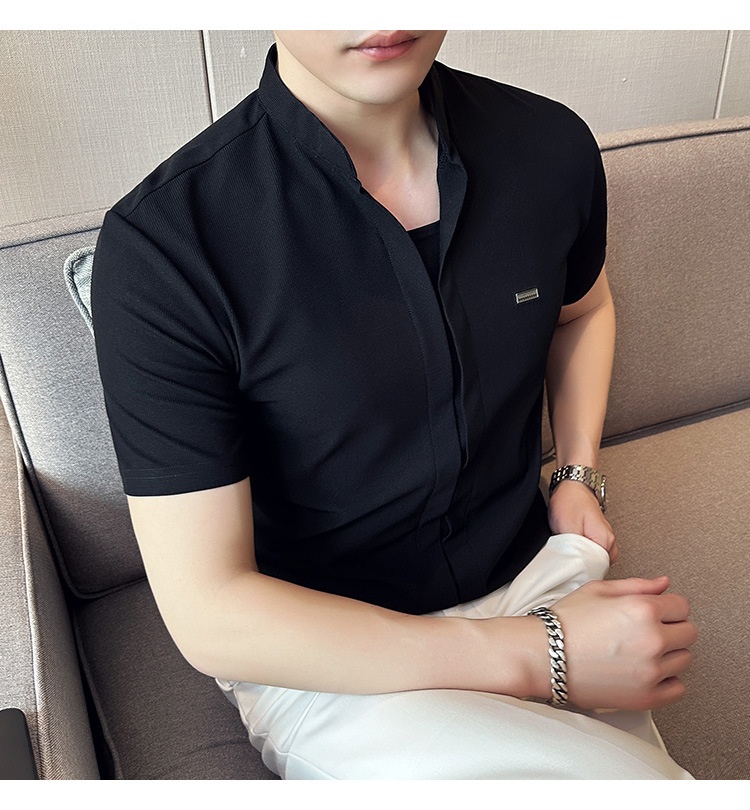 Summer Light Waffle Short Sleeve Shirt Niche Design Stand Collar