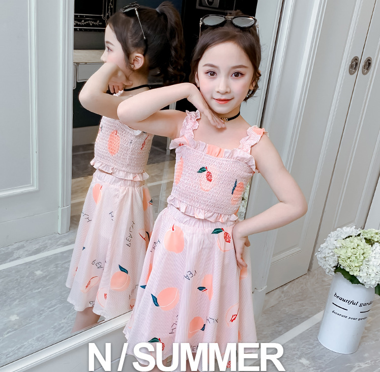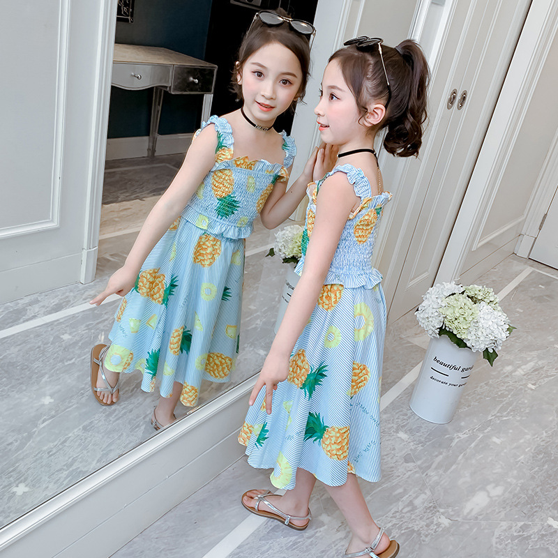 Summer Little Fresh Princess Skirt Girl'S Suspender Vest Of Long Dress Suit