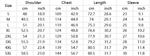 Sizes: M, L, XL, XXL, XXXL, 4XL