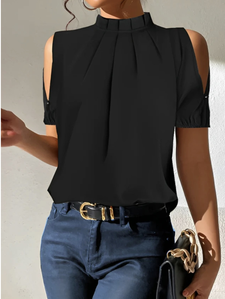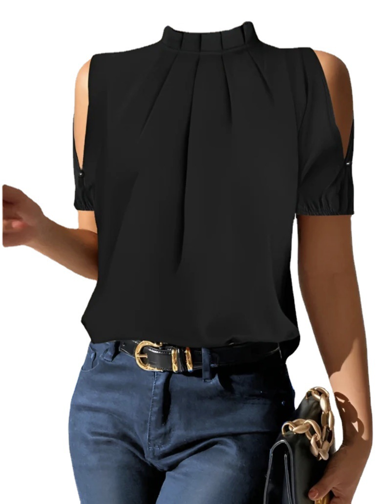 Summer Lotus Leaf Round Neck Short Sleeve Off-shoulder Shirt Women's Loose Cool Shirt