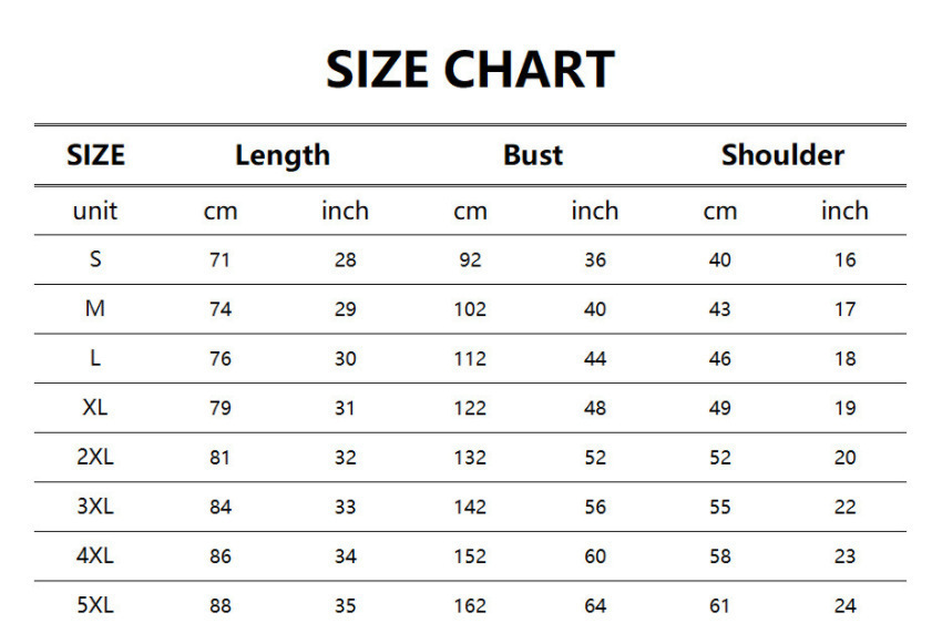 Size: S,M,L,XL,2XL,3XL,4XL,5XL