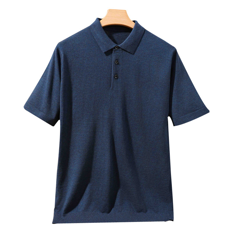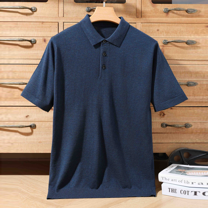 Summer Men's Knitted Short Sleeve Solid Color Casual