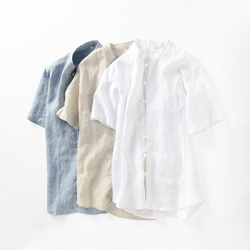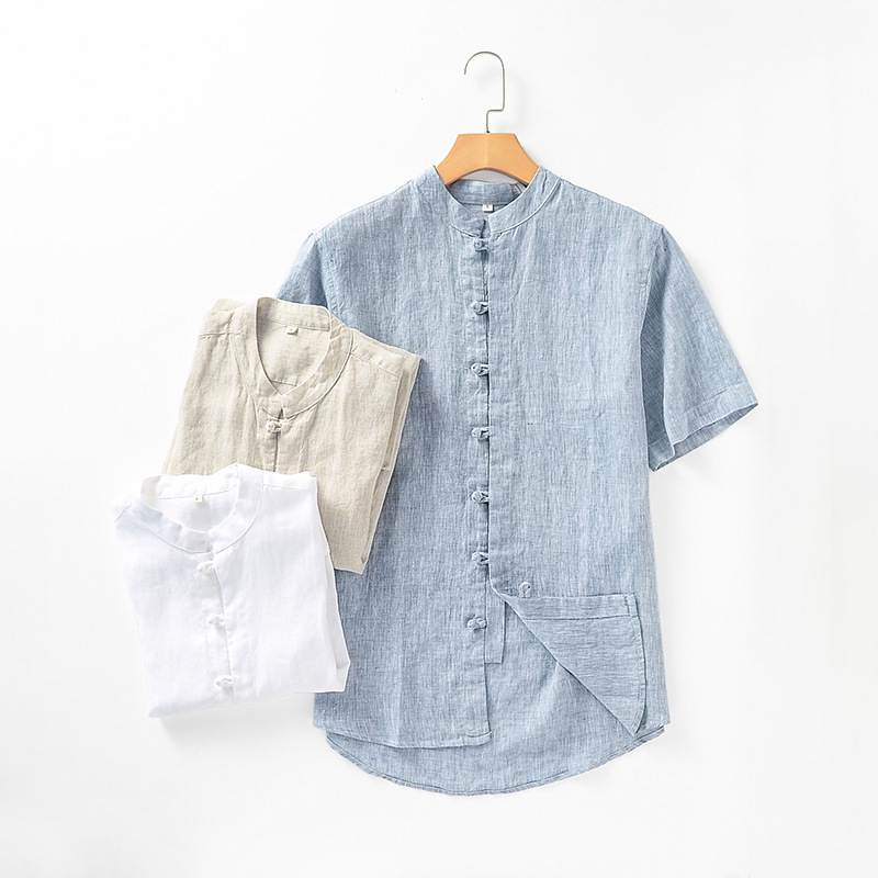 Summer Men's Linen Short-sleeved Shirt