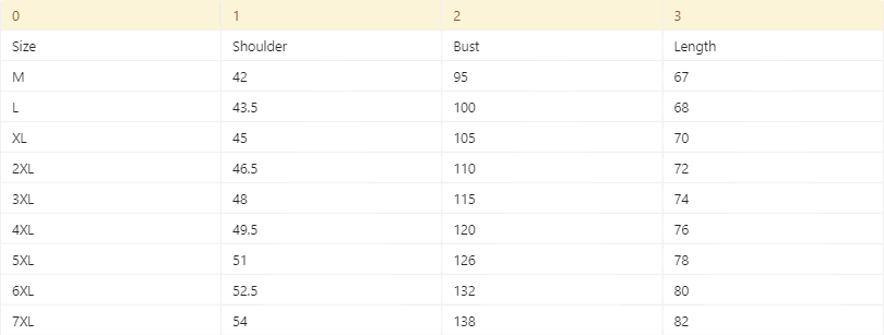 Size: M,L,XL,2XL,3XL,4XL,5XL,6XL,7XL