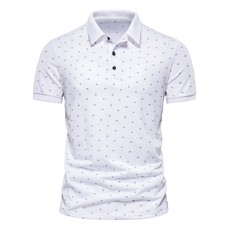 Summer new casual slim European and American men's fashion anchor print short-sleeved lapel T-shirt
